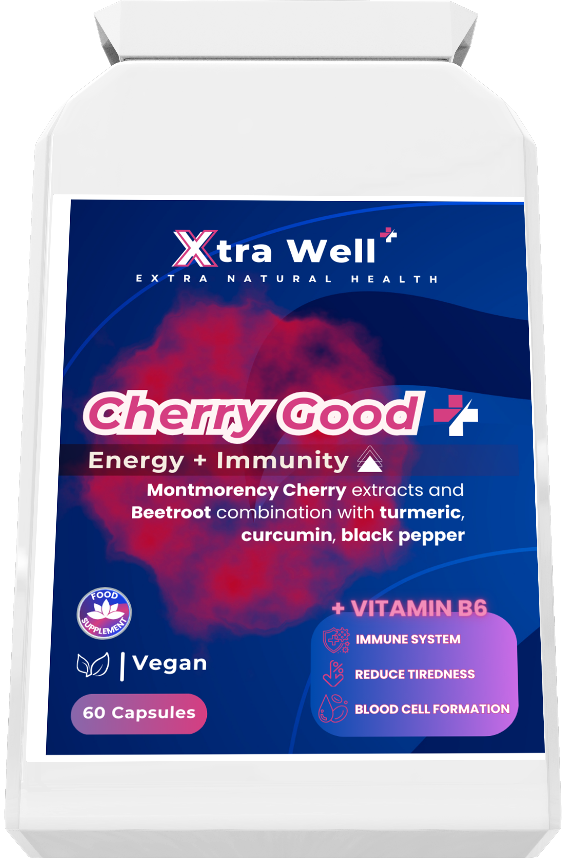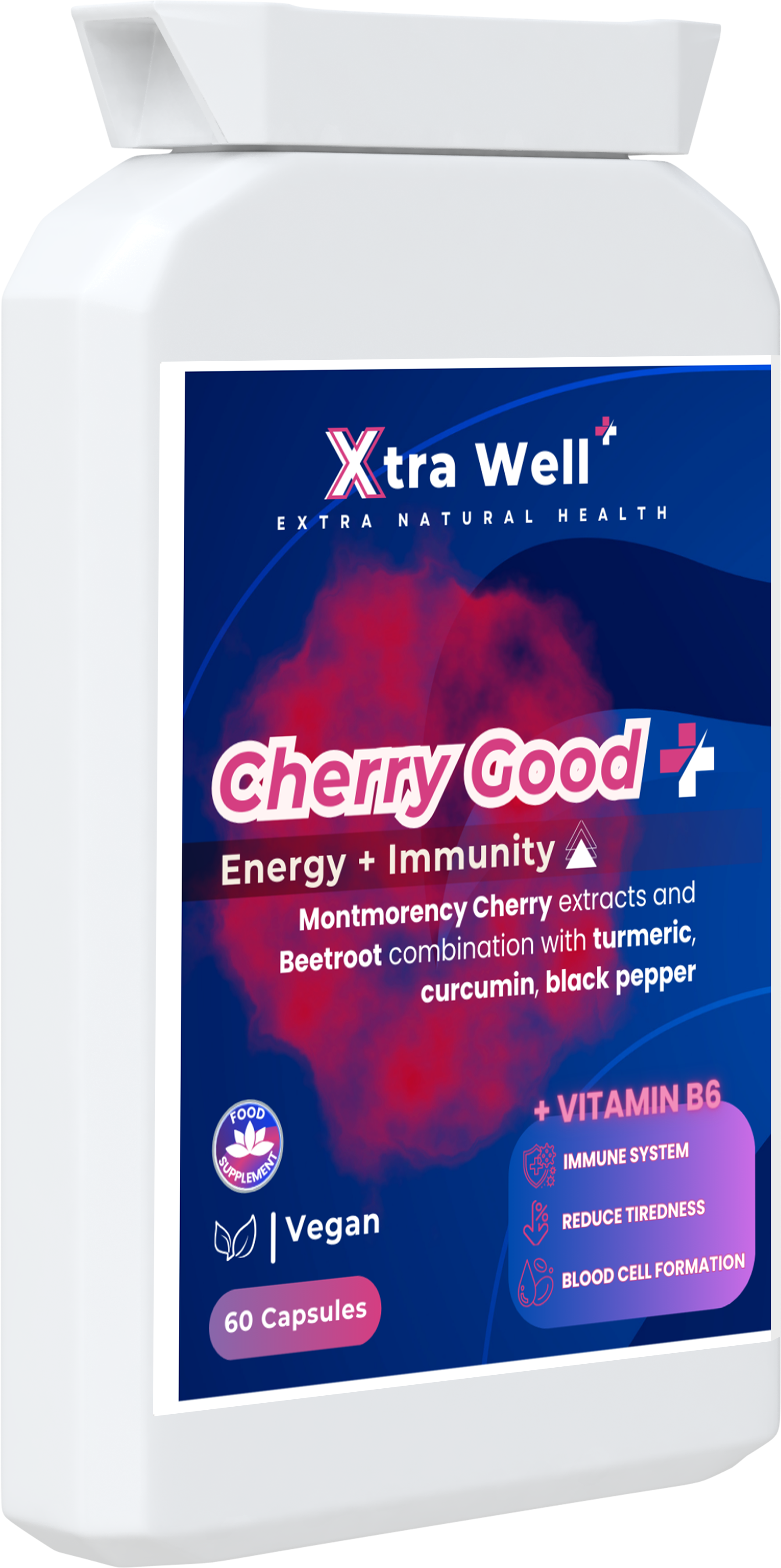 A concentrated beetroot and sour cherry formula, plus three nutritive allies - vitamin B6, black pepper and turmeric. Supports energy levels, immunity, nervous system and hormonal activity
